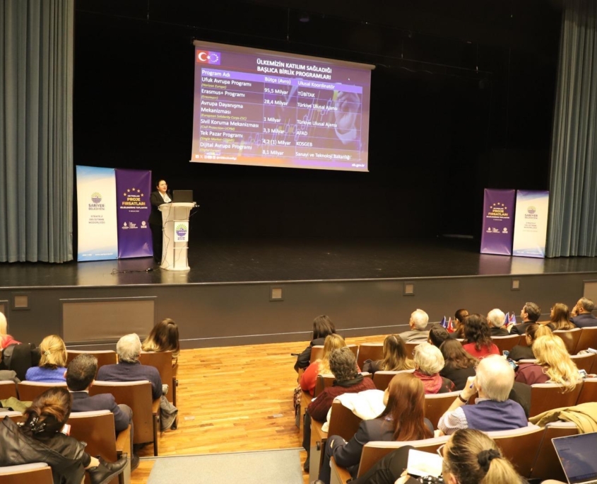 İBB Dış İlişkiler Dairesi Başkanlığı Koordinasyonunda Sarıyer Belediyesi ev sahipliğinde Sarıyer Belediyesine ait Boğaziçi Kültür ve Sanat Merkezinde (BKSM) gerçekleştirilen AB Fonları ve Proje Fırsatları Bilgilendirme Toplantısı düzenlendi. Toplantıya Sarıyer Meclis Başkanvekili Meltem Yücel Pir, İBB Dış İlişkiler Dairesi Başkanı Barbaros Büyüksağnak, İBB AB İlişkileri Şube Müdürü Dr. Ali Doğanay ve Sarıyer Belediyesi Başkan Yardımcıları başta olmak üzere İstanbul’daki ilçe belediyeleri, üniversiteler ve Sivil Toplum Kuruluşlarından (STK) temsilciler katılım sağladı. Dışişleri Bakanlığı AB Başkanlığı İstanbul Temsilciliğinden AB İşleri Uzmanı Ayşe Deniz Arıcan yerel yönetimlerin, üniversitelerin ve STK’ların yararlanabilecekleri başta Katılım Öncesi Mali Yardım Aracı (IPA) ve AB Birlik Programları olmak üzere Sınır Ötesi İş Birliği Programları hakkında detaylı bir sunum gerçekleştirdi. Dışişleri Bakanlığı AB Başkanlığı İstanbul Temsilciliğinden AB İşleri Uzmanı Sinem Bölükbaşı İçöz ise etkinliğin ikinci oturumunda Erasmus+ Programı ev Avrupa Dayanışma Programı hakkında bilgilendirici bir sunum gerçekleştirdi. Etkinlik, toplu fotoğraf çekiminin ardından sona erdi.