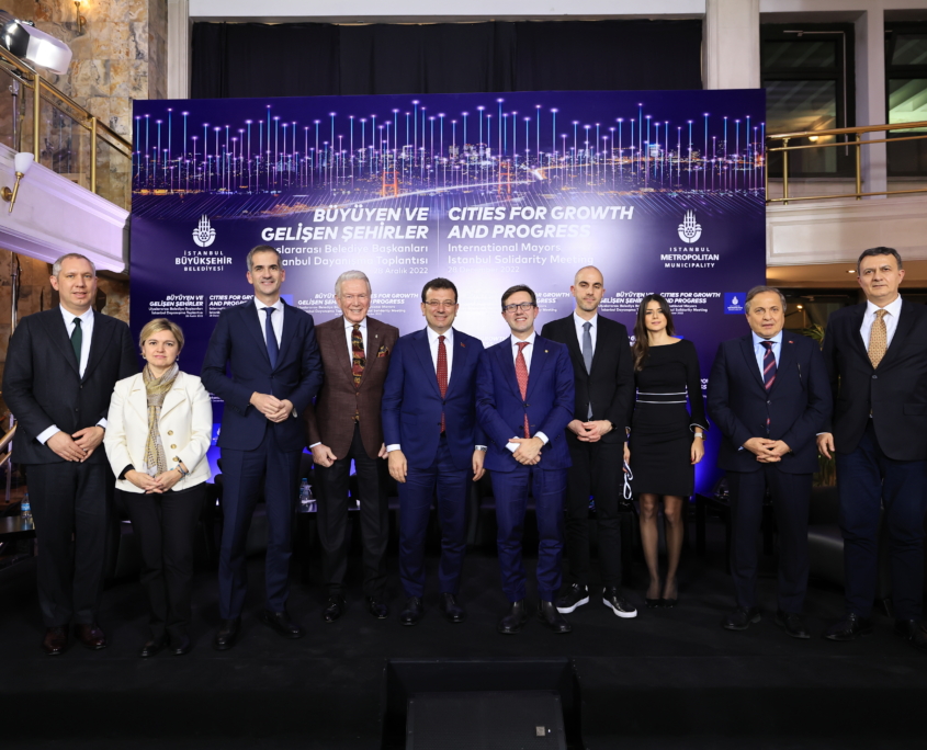 Avrupa Şehirler Birliği (EUROCİTİES) üyesi kentlerin belediye başkanları, yerel mahkemece 2 yıl 7 ay 15 hapisle cezalandırılan ve siyasi yasak istenen İBB Başkanı Ekrem İmamoğlu ile Saraçhane’de bir araya geldi. Floransa, Atina ve Hannover belediye başkanları fiziki; Paris Belediye Başkanı yazılı; Utrecht, Linz ve Hamburg belediye başkanları da video-mesaj yoluyla, Başkanımız İmamoğlu’na desteklerini sundu.
